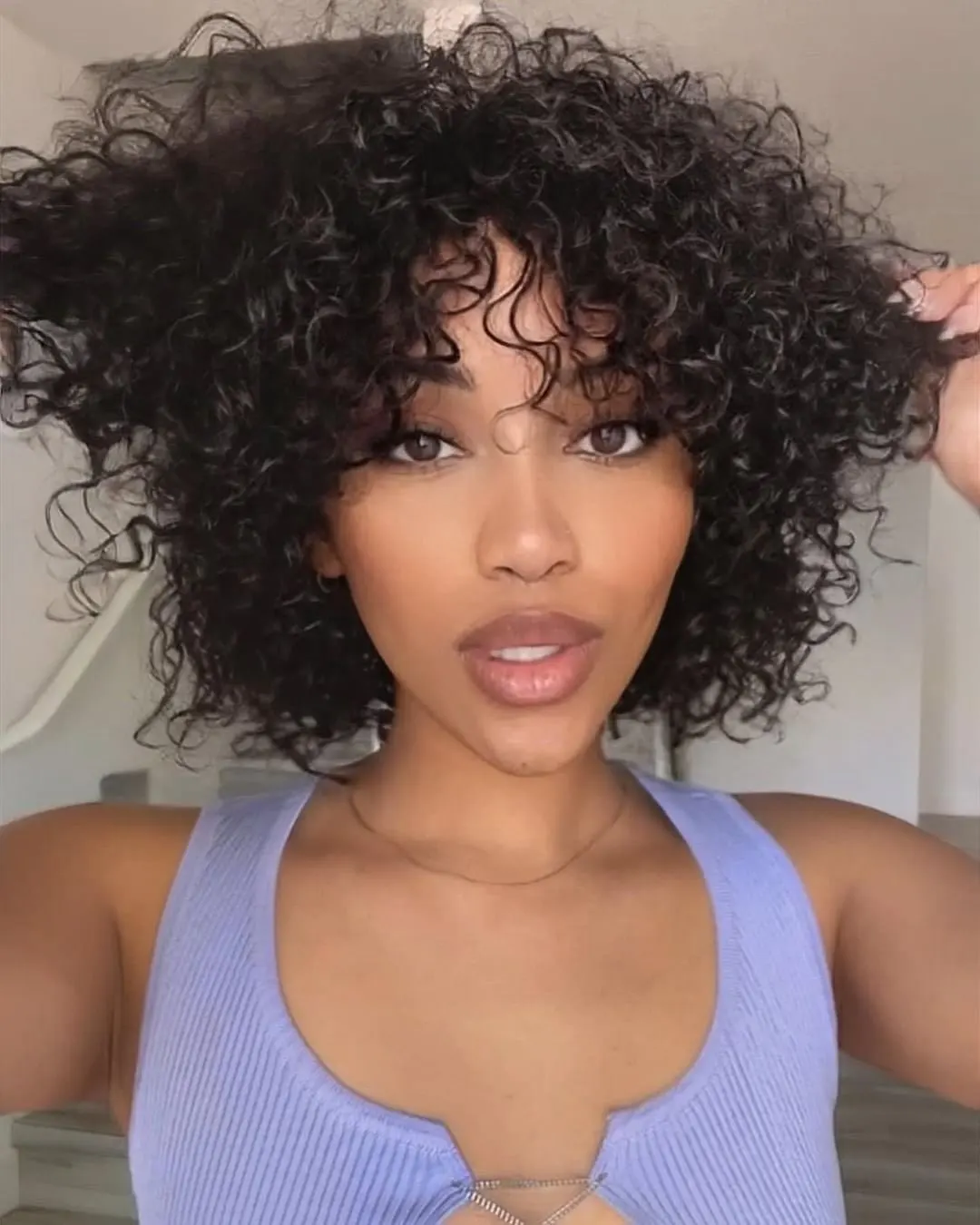 True Scalp Wig Short Curly Bob Wig with Bangs Human Hair Ready to Go Wig