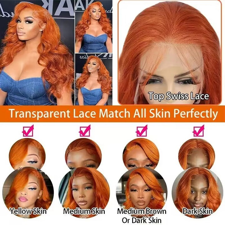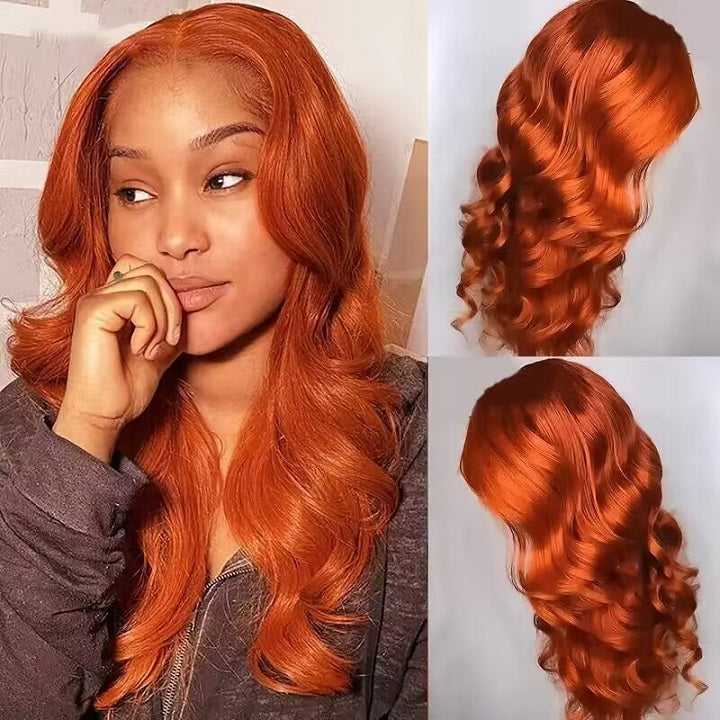 #350 Ginger Colored Body Wave 13x4 Lace HD Wig Glueless Human Hair Wig